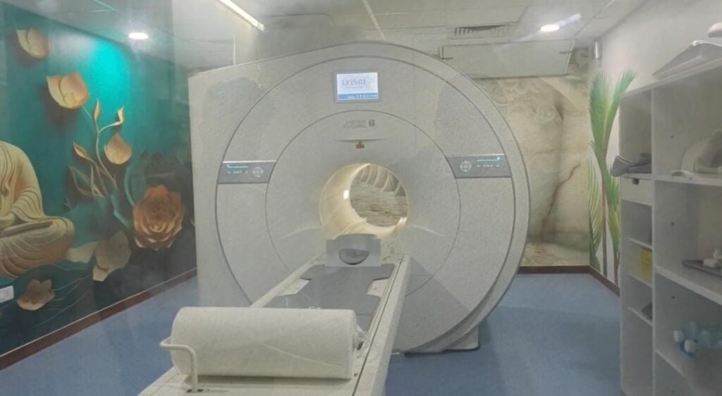 अस्पताल परिसर में अत्याधुनिक 1.5 टेस्ला MRI मशीन लगाई गई है। इससे जांच तेज और सटीक होगी, प्रतिदिन दर्जनों मरीजों का इलाज संभव। गंभीर बीमारियों, दुर्घटना एवं न्यूरोलॉजिकल मामलों में विशेष लाभ।